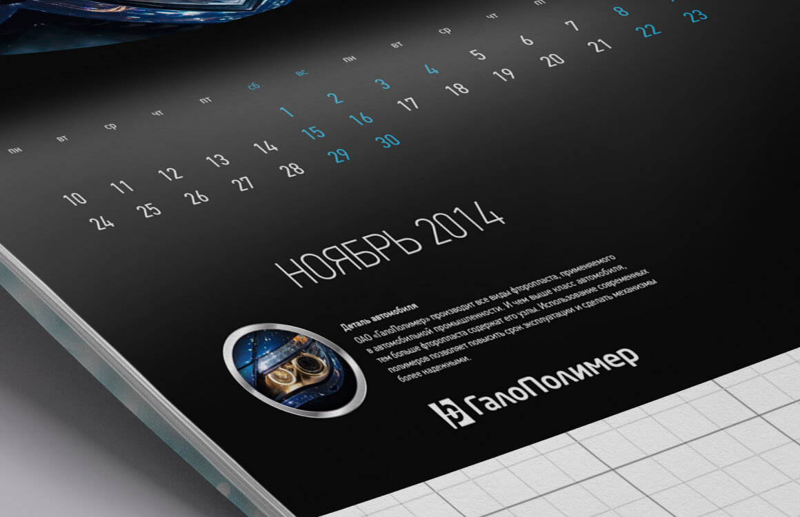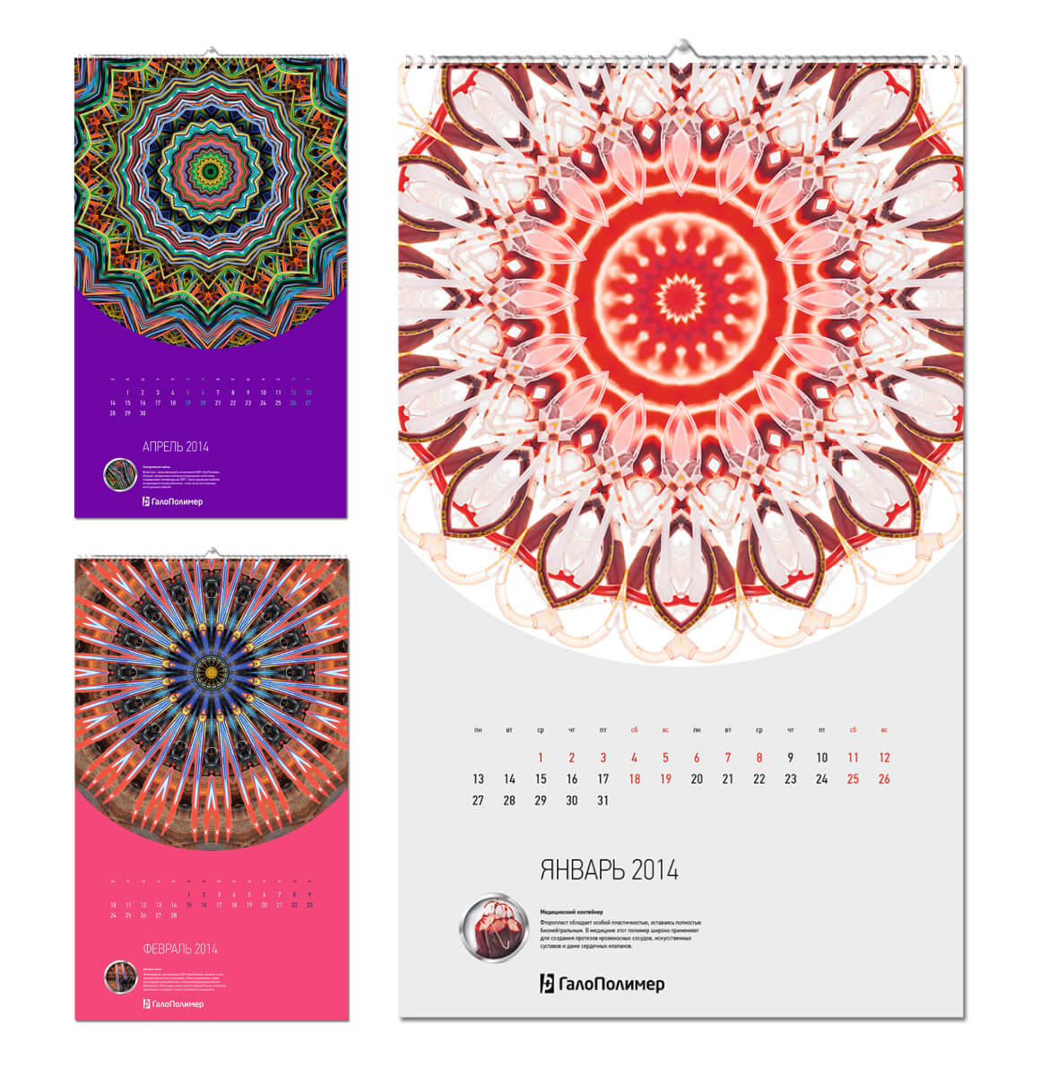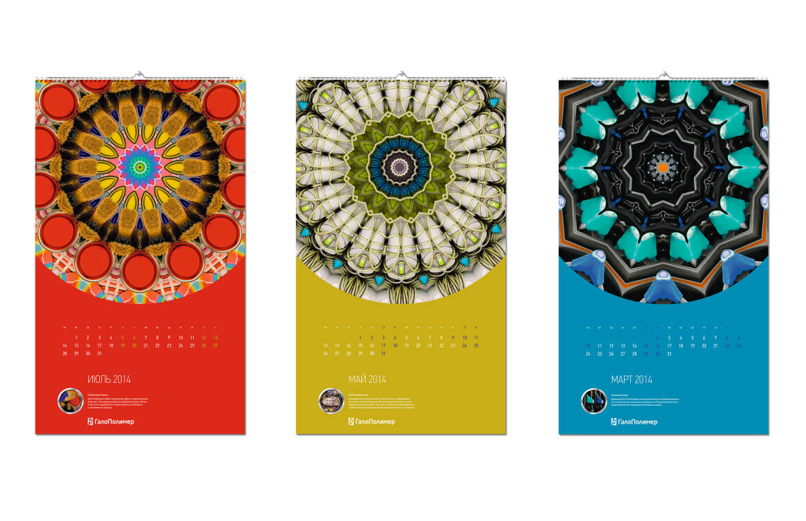 Дизайн календаря. Калейдоскоп из предметов, для производства которых используется продукция компании.